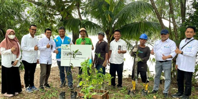Bertempat di salah satu sisi bantaran Sungai Siak, manager UPDK Pekanbaru , Yuskar Radianto serahkan bantuan penghijauan ini, Senin (28/11).