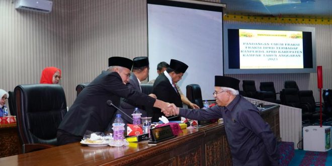 Kampar – Rapat Paripurna DPRD Kampar dengan agenda Pandangan Umum Fraksi-Fraksi DPRD Kampar, Senin (24/10/2022) malam, berjalan lancar meskipun sempat molor dari jadwal akibat tingkat kehadiran Anggota DPRD masih belum mencukupi.
