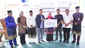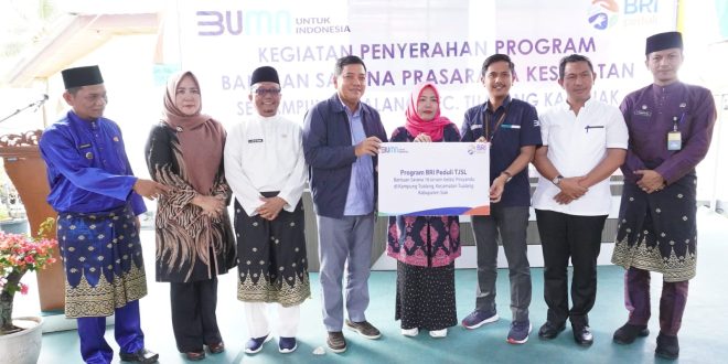 SIAK– Sekretaris Daerah Kabupaten Siak Arfan Usman menyaksikan penyerahan Corporate Social Responsibility (CSR) dari Bank Rakyat Indonesia (BRI) untuk menambah sarana kesehatan bagi 16 Posyandu dan bantuan 70 Rumah Layak Huni (RLH) se-kecamatan Tualang. Diserahkan secara simbolis oleh kepala Cabang BRI Perawang Bayu Adiwinoto di damping anggota DPR RI H Jon Erizal.