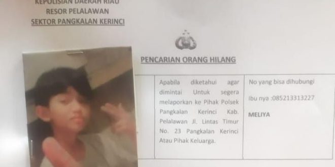 PANGKALANKERINCI (pekanbarupos.co) — Rodyal Dwy Dharma alias Rody (13) sudah 10 hari tak pulang ke rumah. Belum tahu dimana rimbanya. Namun, orang tuanya tetap berharap anaknya segera kembali dalam keadaan sehat dan selamat. Sebagai ikhtiarnya, kehilangan putranya ini telah dilaporkan ke Polsek Pangkalan Kerinci.