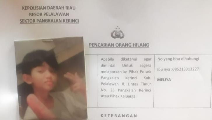 Namun, ibunya Meliyana, baru melaporkan kehilangan putranya yang masih berstaus pelajar itu di Polsek Pangkalan Kerinci, Selasa (17/1/2023).