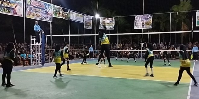 INHU (pekanbarupos.co) — Tim Volly ball Putri Mamek Grup asal Desa Beligan Kecamatan Seberida Kabupaten Indragiri Hulu (Inhu) tampil menggila dalam perebutan juara pertama turnamen Volly Ball dalam rangka HUT Desa Seresam yang ke 41 tahun 2023, yang berlangsung Rabu malam (25/1/2023) dilapangan Bola Voli desa setempat.