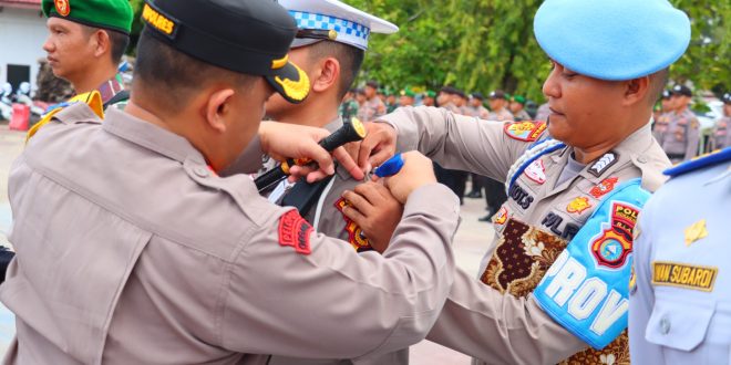 RAZIA – Ops LK Tahun 2023 Diwarnai dengan Pemasangan Pita Kepada Personil Oleh Kapolres Inhu.