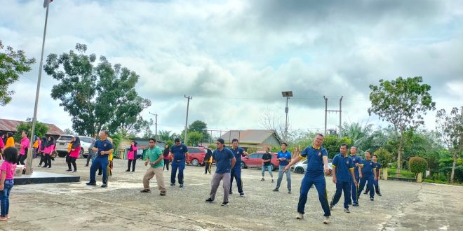 INHU (pekanbarupos.co) — Kepala Kepolisian Sektor (Kapolsek) Batang Cenaku Polres Indragiri Hulu (Inhu), Iptu Adam Effendi, SE.MH bersama para Kanit, personel dan juga Ibu ibu Bhayangkari menggelar kegiatan Senam Jantung Sehat, Jumat pagi (10/2/2023) dihalaman Mapolsek setempat.
