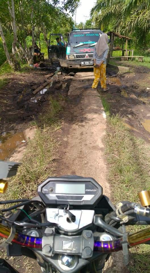 Kondisi rusak parah Jalan Lintas Bono ke Pulau Muda, Teluk Meranti, Pelalawan.