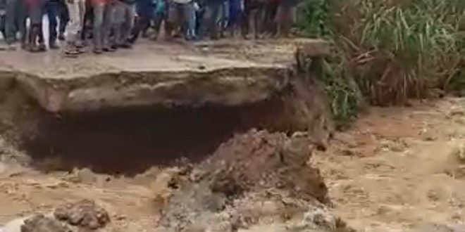 Jebolnya box culvert tersebut terus menggerus jalan hingga dua sisi jalan terpisah hingga 8 meter.