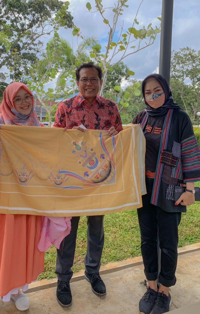 Bahkan saat itu salah satu motif scarf bertema “Perahu Baganduang”, Dubes Indonesia untuk Kazakhstan memajang di Kantor KBRI Kazakhstan. Dan ia juga bangga memperkenalkan budaya Kuansing.