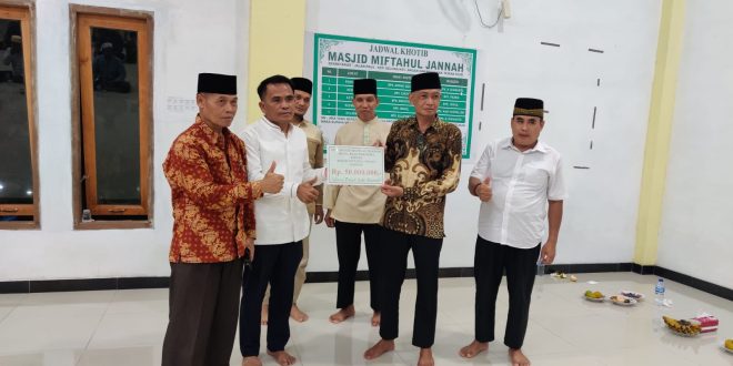 Ketua DPRD Rohil Maston didampingi Ketua LDII Rohil Sarman Syahroni ST menyerahkan bantuan dari BI yang diterima langsung oleh Ketua LDII Bagan Sinembah Nuryanto.met