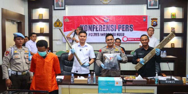 Konprensi Pers di Mapolres Inhu tentang perkara pembunuhan korban anak beranak.