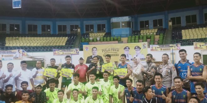 PANGKALANKERINCI — Turnamen bola voli memperebutkan piala Persatuan Bola Voli Seluruh Indonesia (PBVSI) antar pelajar tingkat SMA/SMK se Kabupaten Pelalawan resmi ditutup. Diharapkan akan lahir atlet voli berprestasi dari Kabupaten Pelalawan.