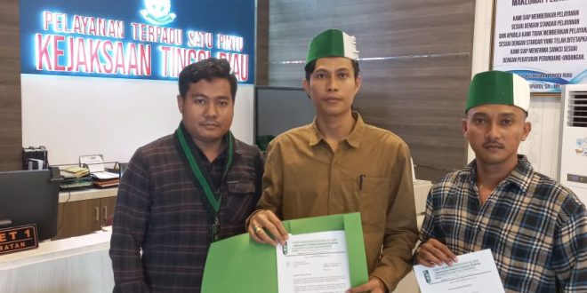 Dalam pelaporan tersebut, Ketua HMI- MPO Cabang Kuansing Nugroho Despendra didampingi dua kader HMI lainnya yakni Ronaldo JP dan Oktria Yogi.