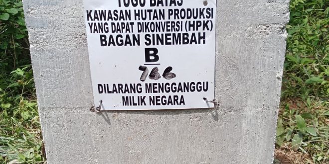 “Tiga wilayah ini sekarang sudah dipasang Patok bertuliskan Tugu Batas Kawasan Hutan Produksi Yang Dapat Dikonversi ( HPK) dan plank bertebaran di pohon sawit bertuliskan Kawasan HKP,” jelas Irwansyah.