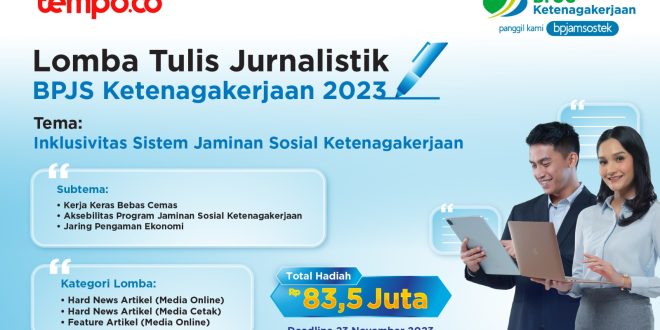 JAKARTA, 12 Oktober 2023 – BPJS Ketenagakerjaan akan berusia ke-46 pada 5 Desember mendatang, dalam memeriahkan HUT tersebut BPJS Ketenagakerjaan kembali menyelenggarakan lomba karya tulis jurnalistik dengan total hadiah mencapai Rp83,5 juta. Tema yang diangkat dalam lomba tahun ini adalah “Inklusivitas Jaminan Sosial Ketenagakerjaan”.