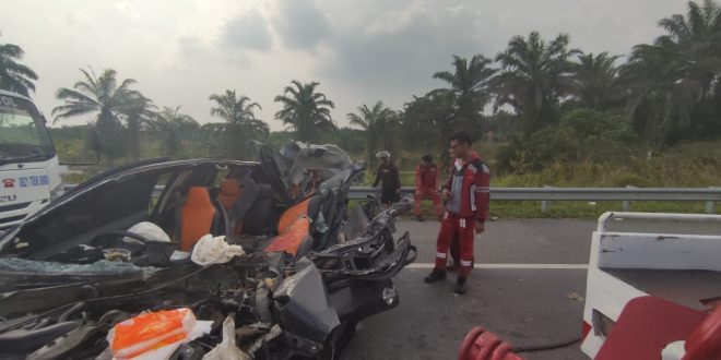 PEKANBARU (pekanbarupos.co) — Jalan Tol Permai KM 46/200 jalur A Kec Kandis Kab. Siak kembali memakan korban jiwa 2 orang meninggal dunia dan 1 orang luka-luka, Sabtu (04/11) sekitar pukul 14.20 wib.