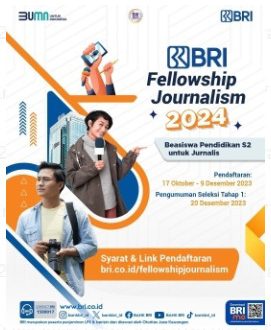 Untuk info syarat dan ketentuan dapat dilihat di link berikut ini: bri.co.id/fellowshipjournalism.(adv/dre)