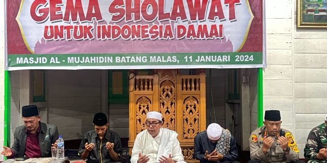 MERANTI (Pekanbarupos.co) – Kapolres Kepulauan Meranti AKBP Kurnia Setyawan,SH.,S.I.K., mewakili Kapolda Riau Irjen Pol Muhammad Iqbal menghadiri acara Gema Sholawat Indonesia Damai yang digelar di Masjid Al-Mujahidin Desa Batang Malas Kecamatan Tebing Tinggi Barat Kabupaten Kepulauan Meranti, Kamis (11/01/2024) malam.
