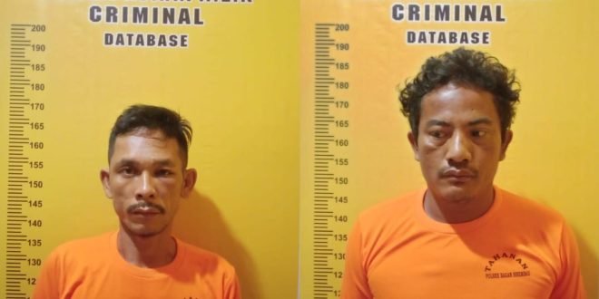 Dan setelah menggerebek rumah kontrakan yang digunakan oleh sekelompok orang untuk melakukan transaksi jual beli narkotika jenis shabu, Tim opsnal yang didampingi RT setempat melakukan penggeledahan terhadap rumah kontrakan tersebut dan berhasil menangkap 2 (dua) Laki-laki yang berada di rumah kontrakan tersebut.