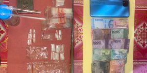 Lalu pada saat dilakukan penggeledahan, ditemukan 6(enam) paket Narkotika jenis Shabu dibungkus plastik bening berat kotor (2,32 gram) berada di atas plafon yang sengaja diletakkan oleh salah satu tersangka ketika sedang bersembunyi dari kejaran pihak kepolisian dan kemudian ditemukan barang bukti yang lainnya berupa 1 ( Satu ) unit Handphone merek Realme warna biru dan uang tunai sebesar Rp.1.667.000 (Satu juta enam ratus enam puluh tujuh ribu rupiah).