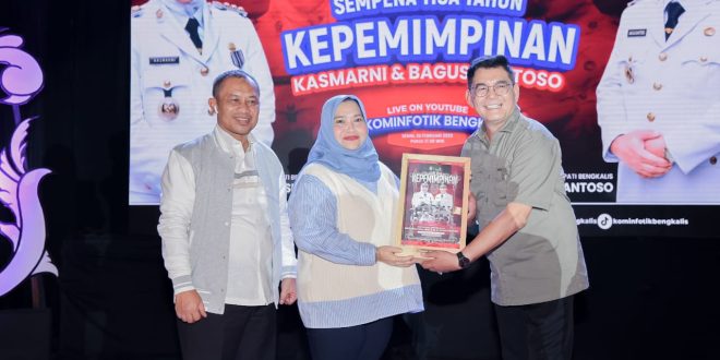 Pada kesempatan itu juga Kepala Dinas Kominfotik Kabupaten Bengkalis Dr. H Suwarto juga menyerahkan buku 3 tahun kepemimpinan Bupati Kasmarni dan Wakil Bupati Bagus Santoso. (mil)