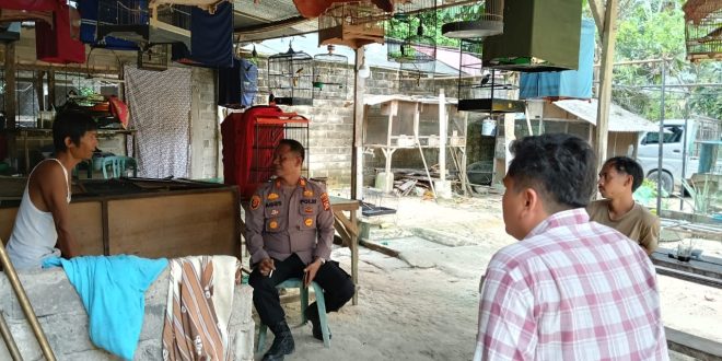 Kapolsek Singingi Hilir AKP Agus Susanto dan Kanit Intelkam Bripka Eko Junaidi dalam imbauan cooling system menemui warga Desa Suka Maju Kecamatan Camat Singingi Hilir, Sabtu (5/10) sekira pukul 08.30 WIB.
