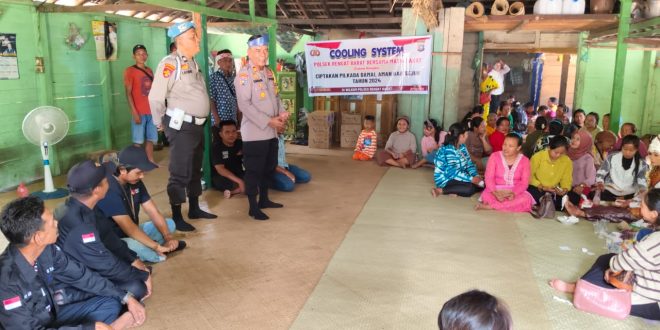 INHU (pekanbarupos.co) -Desa Talang Jerinjing, Kecamatan Rengat Barat, Kabupaten Indragiri Hulu (Inhu) menjadi saksi acara adat “Berikutan” yang merupakan tradisi pertunangan sebelum pernikahan bagi suku Talang Mamak. Dalam suasana penuh kebahagiaan ini, Polsek Rengat Barat mengambil langkah proaktif untuk menciptakan kondisi aman menjelang Pemilihan Kepala Daerah (Pilkada) 2024 dengan menggelar kegiatan cooling system.