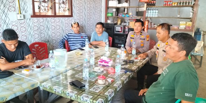 Terpantau, Kapolsek Tambusai AKP Efendi Lupino SH, di dampingi Kanit Bimas Ipda Lumban Gaol berdukusi serta bersilaturahmi dengan Tokoh Masyarakat, Tokoh Pemuda di Desa Tambusai Timur.