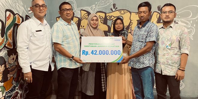 PEKANBARU (Pekanbarupos.co) – Badan Penyelenggara Jaminan Sosial (BPJS) Ketenagakerjaan Kantor Cabang Pekanbaru Kota menyerahkan santunan Jaminan Kematian (JKM) kepada ahli waris Farid Nur Zahran, salah seorang pekerja Wareh Kupie di Kota Pekanbaru yang meninggal dunia karena sakit, beberapa waktu lalu.