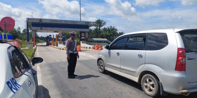 Sementara itu, pantauan situasi arus lalu lintas di Gerbang Tol Pekanbaru – Dumai terpantau ramai namun tetap lancar, baik dari arah Kota Pekanbaru maupun sebaliknya, tampak personel Sat PJR Ditlantas Polda Riau melaksanakan kegiatan pengaturan lalu lintas di gerbang TOL Pekanbaru – Dumai guna memberikan kelancaran aktivitas lalu lintas.(fiq)