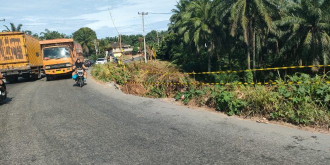 BAGAN BATU (pekanbarpos.co) – Waspada…! Jalan lintas Sumatera tepatnya di km 9 Bagan Batu Kepenghuluan Pelita (Paket C) Kecamatan Bagan Sinembah, tepatnya di depan hotel Arkemo sangat membahayakan keselamatan jiwa para pengendara.