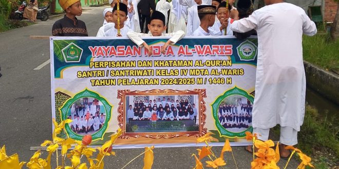 BAGANSIAPIAPI (pekanbarupos.co) – Sebagai bentuk berakhirnya masa proses pembelajaran di satuan lembaga pendidikan lazimnya dilakukan kegiatan wisuda, tidak terkecuali hal yang sama dilakukan oleh Madrasah Diniyyah Takmiliyyah Awwaliyah (MDTA) Al Waris Jalan Pulau Baru Bagansiapiapi Kamis (29/05/2025).