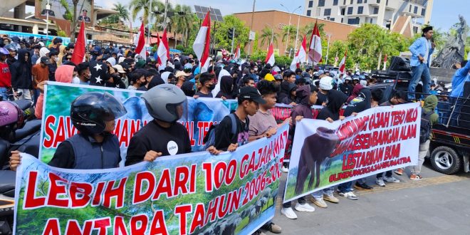 PEKANBARU (pekanbarupos.co) — Ratusan massa dari Aliansi Masyarakat Penyelamat Habitat Gajah Provinsi Riau menggelar aksi damai, Selasa (24 Juni 2025), di Kantor Gubernur Riau dan Kejaksaan Tinggi (Kejati) Riau.