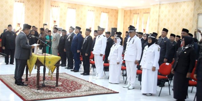 Foto Ppco : Bupati Rohil H Bistamam membacakan sumpah jabatan dalam proses pelantikan 25 orang pejabat eselon II di lingkungan Pemkab Rohil.