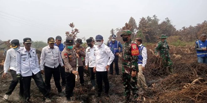 KUBA (pekanbarupos.co) – Mentri Lingkungan Hidup (LH) Republik Indonesia, Dr.Hanif Faisol Nurofiq meninjau langsung Kebakaran Hutan dan Lahan (Karhutla) yang terjadi di Kepenghuluan Rantau Panjang Kiri, Kecamatan Kubu Babussalam, Kabupaten Rokan Hilir, Provinsi Riau, Rabu (23/7/2025).