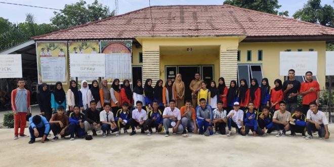 Foto Ppco : Anggota Paskibra Kepenghuluan Suka Jadi usai latihan pengibaran bendera.