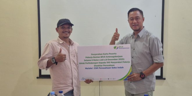 Penyerahan kartu kepesertaan itu diserahkan langsungnkepada Asisten Kepala PT Seko Indah, Hery Dhani SP, Est Manager PT Sawit Bertuah Lestari, Sunarto dan Est Manager PT Sandria Sukses Bersama, Hadinamora SP. Adapun pekerja rentan yang dilindungi melalui program CSR adalah buruh bangunan, tukang ojek, pekerja rumah tangga, marbot, tukang parkir, petani, nelayan dan lain sebagainya.