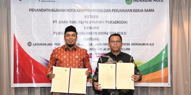 BATAM (pekanbarupos.co)– PT Bank Riau Kepri Syariah (Perseroda) bersama Pemerintah Kabupaten (Pemkab) Indragiri Hulu resmi menandatangani Memorandum of Understanding (MoU) terkait layanan jasa perbankan, serta Perjanjian Kerja Sama (PKS) dengan Dinas Pemberdayaan Masyarakat dan Desa terkait pengelolaan dana desa terintegrasi Cash Management System (CMS) BRK Syariah.
