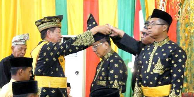 LAMR Rohil Tabalkan Gelar Adat Seri Setia Amanah Kepada Bupati Bistamam dan Wabup Jhony Charles