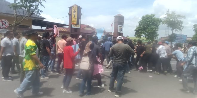 INHU (pelanbarupos.co) – Ribuan massa anarkis geruduk Mako Polres Inhu di Rengat. Pemicunya, seorang warga yang melakukan pelanggaran Lalin justru dianiaya Polisi hingga masuk rumah sakit.