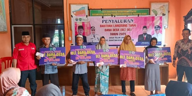 BANTAN (pekanbarupos.co) – Pemerintah Desa (Pemdes) Teluk Lancar kembali menunjukkan komitmennya dalam meningkatkan kesejahteraan masyarakat dengan menyalurkan Bantuan Langsung Tunai Dana Desa (BLT-DD) tahap IV untuk bulan Oktober, November, dan Desember tahun 2025. Penyaluran ini dilaksanakan pada Kamis (6/11), dan menyasar 28 Keluarga Penerima Manfaat (KPM) di desa tersebut.