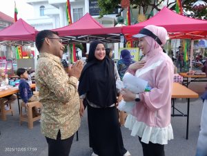 BAGANSIAPIAPI (pekanbarupos.co) — Ketua Tim Penggerak PKK Kabupaten Rokan Hilir, Indah Septiani Charles, didampingi pengurus Umah Oleh-oleh Bagansiapiapi, meninjau langsung stand bazar Usaha Mikro, Kecil, dan Menengah (UMKM) Kecamatan Bangko yang turut meramaikan kegiatan Donasi Rokan Hilir untuk Anak-anak Palestina dan Korban Bencana di Sumatera, Jumat sore (5/12/2025).