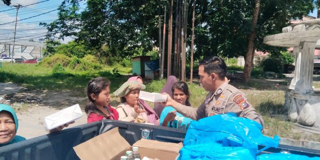 Dalam kegiatan tersebut, personel Ditlantas Polda Riau membagikan ratusan paket nasi kotak kepada masyarakat di sejumlah ruas jalan protokol Kota Pekanbaru, salah satunya di kawasan traffic light Mall SKA.