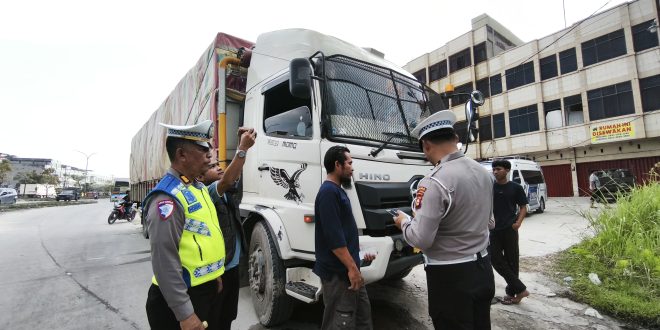 PEKANBARU (pekanbarupos.co)– Direktorat Lalu Lintas (Ditlantas) Polda Riau melaksanakan operasi penegakan hukum dalam rangka menindaklanjuti Surat Keputusan Bersama (SKB) Tiga Menteri terkait pengaturan operasional kendaraan angkutan barang menjelang perayaan Natal 2025 dan Tahun Baru 2026, Selasa (23/12/2025).