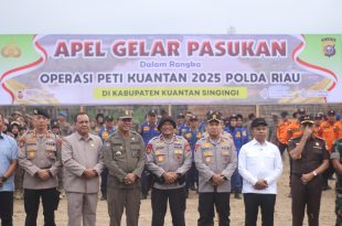 Apel Gelar Pasukan Ops Peti Kuantan 2025 KUANSING (pepos)– Pemerintah Provinsi Riau bersama Kepolisian Daerah (Polda) Riau menggelar Apel Gelar Pasukan Operasi Penertiban Pertambangan Tanpa Izin (PETI) Kuantan Tahun 2025. Apel berlangsung di bawah Jembatan Gantung Dusun Tongah, Desa Seberang Taluk, Kecamatan Kuantan Tengah, Kabupaten Kuantan Singingi, Kamis pagi, (31/7) …