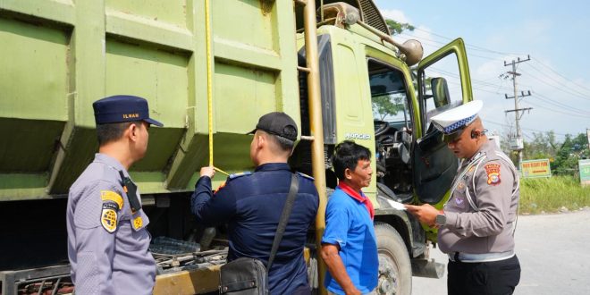Petugas melakukan pemeriksaan terhadap kendaraan angkutan yang diduga mengalami kelebihan muatan (over loading) dan kelebihan dimensi (over dimension) dengan pengukuran kendaraan, pendataan pelanggaran ODOL, pemeriksaan surat-surat kendaraan dan pengemudi, serta pengecekan kondisi teknis kendaraan seperti rem, lampu, dan ban.