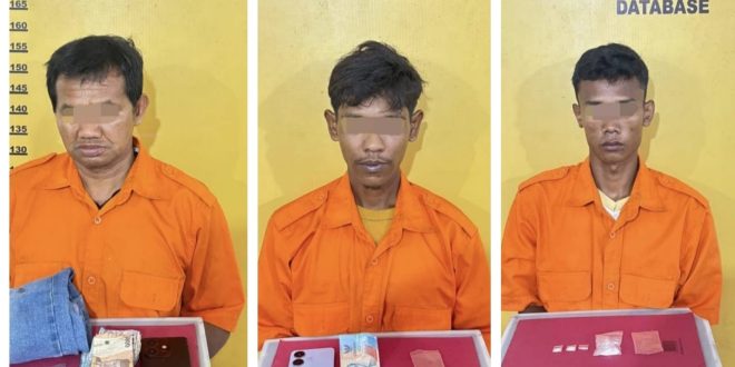Tindakan penggerebekan dilakukan di sebuah rumah di Desa Pekan Heran kecamatan Rengat Barat kali ini Polisi mengamankan tiga orang tersangka dan puluhan paket sabu sebagai barang bukti.