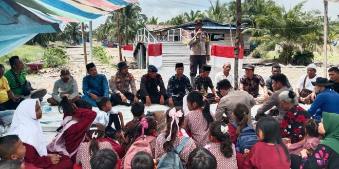 Kapolsek Sinaboi menyampaikan apresiasi dan ucapan terima kasih kepada seluruh personel BKO Brimob dan BKO Polda Riau atas sinergi dan kerja keras dalam pembangunan Jembatan Merah Putih Presisi di Kampung Aman.