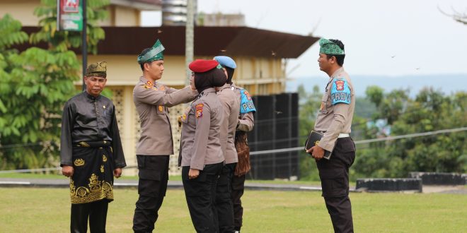 Kapolres menegaskan penggunaan tanjak dan selempang bukan sekadar atribut tambahan, melainkan bentuk penghormatan terhadap nilai-nilai kearifan lokal yang diwariskan para leluhur.
