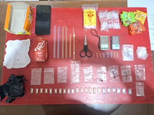 Selain itu, polisi turut menyita dua unit timbangan digital, plastik klip kosong, pipet bening, gunting, serta satu unit handphone yang diduga digunakan untuk berkomunikasi dalam transaksi narkotika.