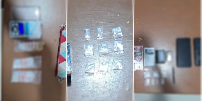 Barang bukti yang disita, 9 paket kecil sabu, 2 unit handphone, 1 unit sepeda motor (diduga untuk aktivitas peredaran).