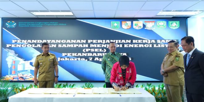 PEKANBARU (pekanbarupos.co)– Pemerintah daerah di Provinsi Riau menandatangani nota kesepahaman (MoU) Pengolahan Sampah menjadi Energi Listrik (PSEL) aglomerasi Pekanbaru Raya, Senin (6/4/2026) di Jakarta.